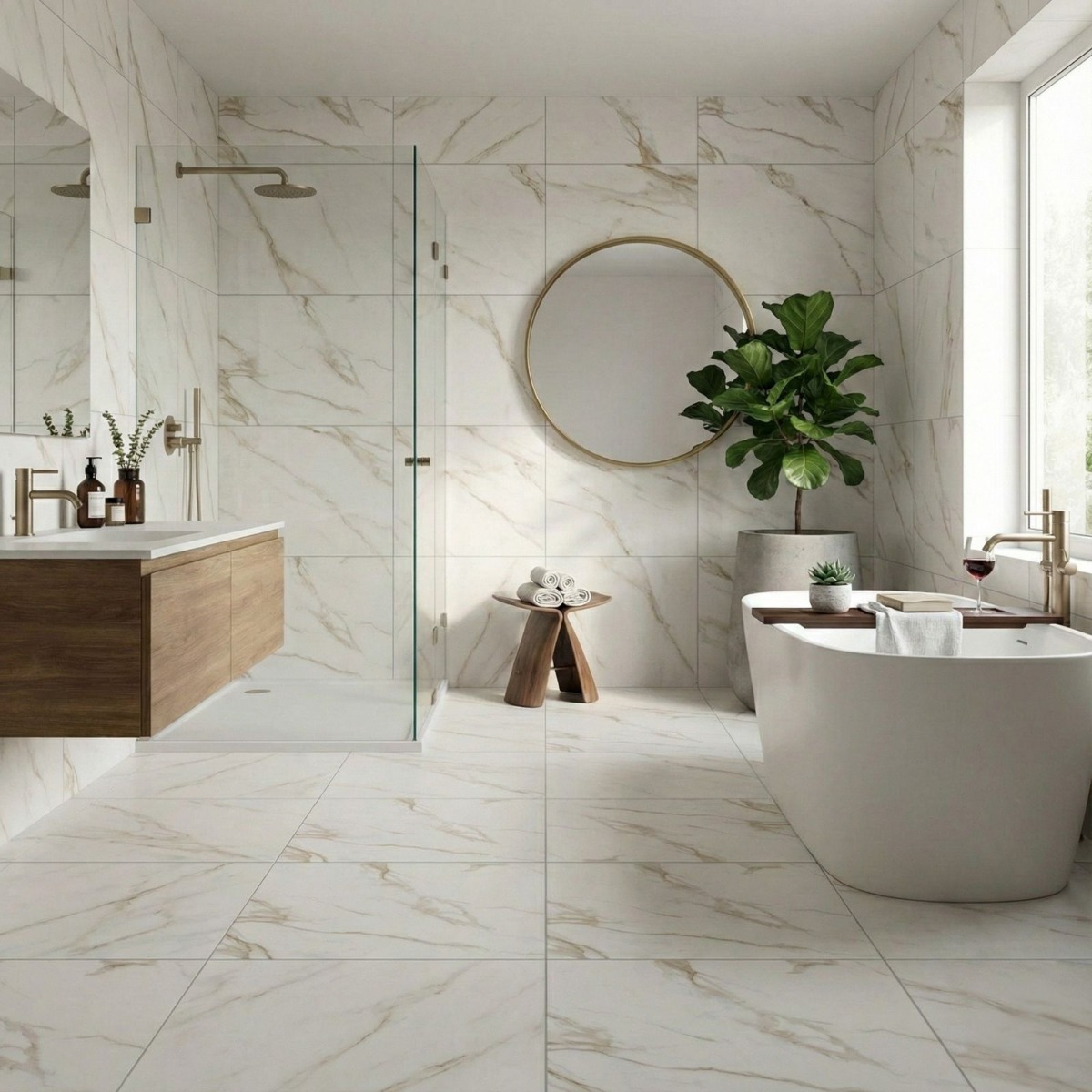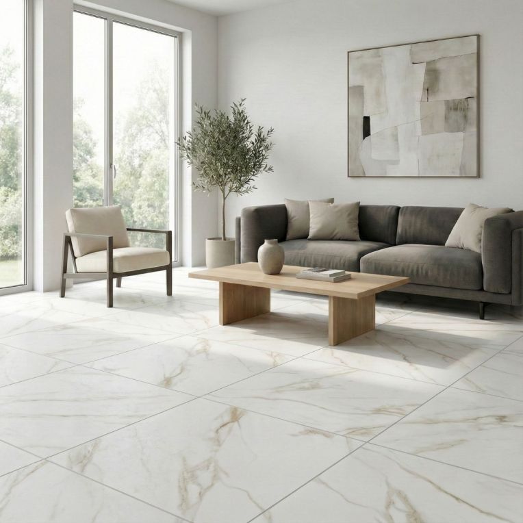 Statuario Mercury Gold White Marble Effect Rectified Matt Porcelain Wall and Floor Tile gives the classic marble effect tile look a more polished, usable edge for everyday interiors. The mix of soft white shading and marble-inspired patterning gives the tile a premium feel, and the matt finish stops it from looking one-dimensional. The benefit of choosing porcelain here is that the surface stays robust and low-fuss in daily life, rather than looking good only on day one. Rectified edges also help the finished installation look cleaner and more precise. The matt surface keeps the overall result grounded and easier to style day to day. The square 600x600mm size sits comfortably in both compact and medium rooms, giving a neat finish that does not feel fussy. Because it works on both walls and floors, it is easy to carry through bathrooms, kitchens and circulation spaces for a more joined-up interior.