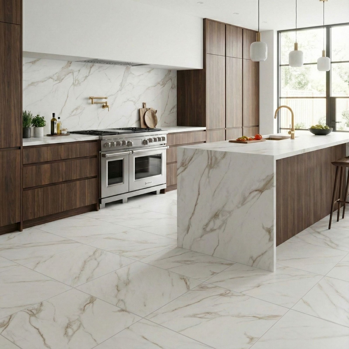 - Marble-inspired design that gives the tile a refined stone look