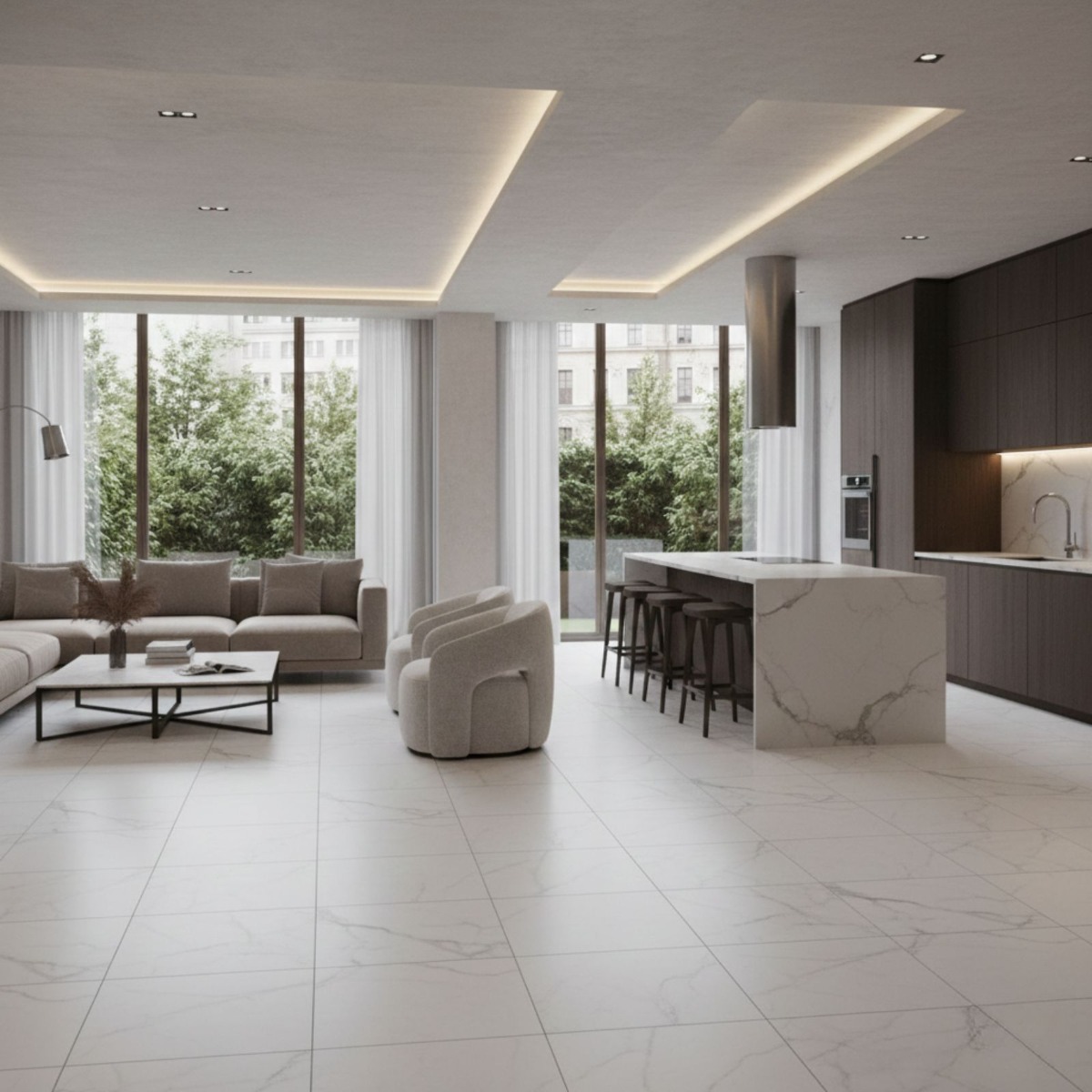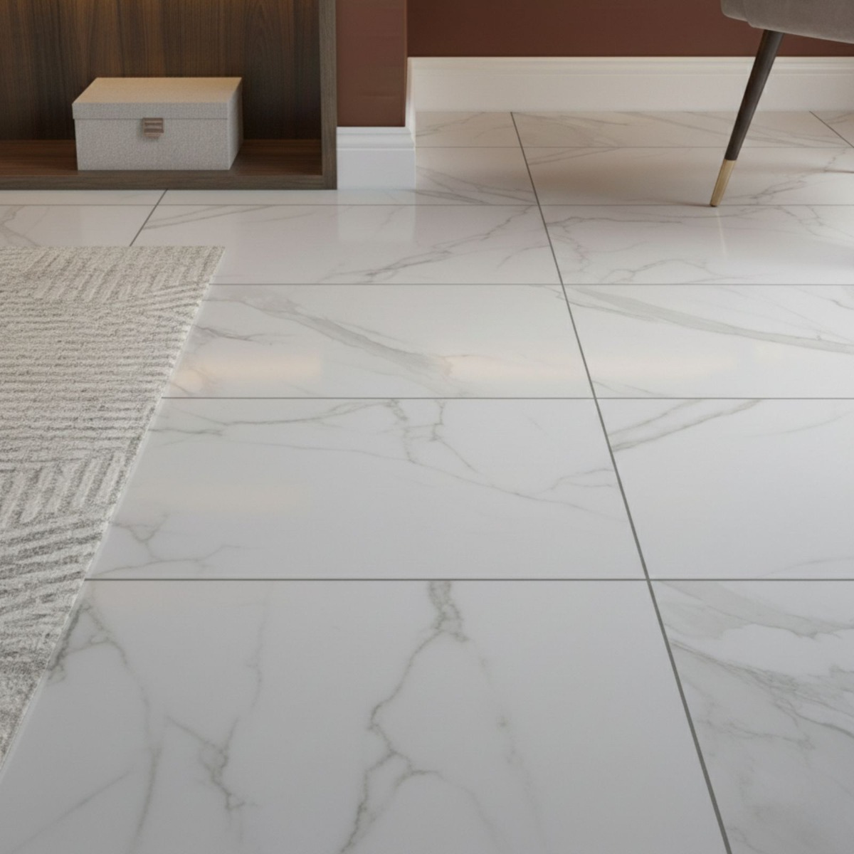 - Marble-inspired design that gives the tile a refined stone look