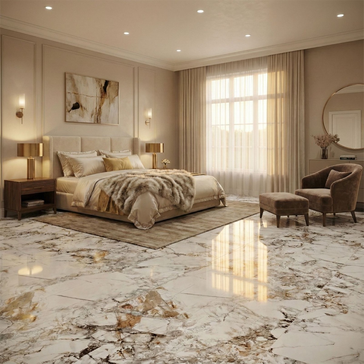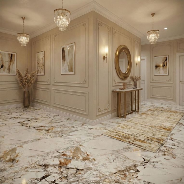 Pairing tip: Keep surrounding finishes soft and plain with warm neutrals, natural oak or gentle greys so the marble movement does the work.