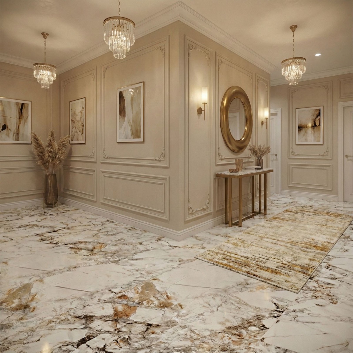 Zebra Large Statement Porcelan White Marble Effect Rectified Gloss Porcelain Wall and Floor Tile gives the classic marble effect tile look a more polished, usable edge for everyday interiors. The mix of chalky white shading and marble-inspired patterning gives the tile a premium feel, and the gloss finish stops it from looking one-dimensional. The benefit of choosing porcelain here is that the surface stays robust and low-fuss in daily life, rather than looking good only on day one. Rectified edges also help the finished installation look cleaner and more precise. Its 600x600mm proportions keep the layout balanced, which works well when you want clarity without the drama of an oversized slab. It is a strong fit for bathrooms, kitchens and connecting living spaces where using the same tile across walls and floors helps the scheme feel more unified.